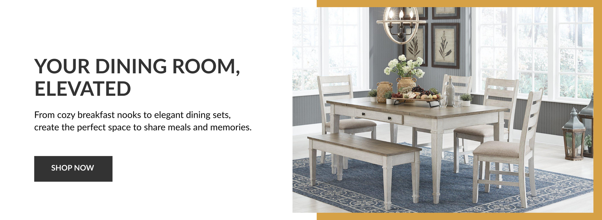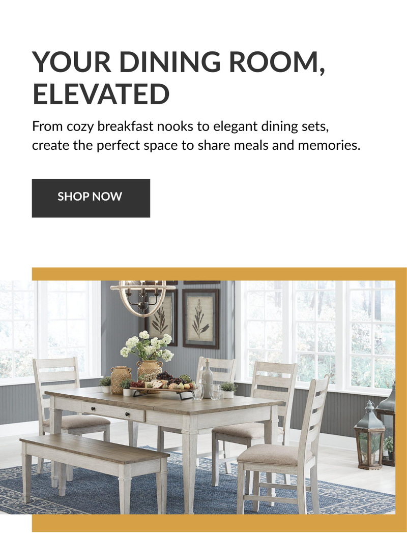View full detailsThis dining package sits comfortably at the intersection of modern lodge and farmhouse aesthetics. Your warm and welcoming disposition is reflected...