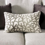 PICOTEE Sofa, Light Gray/Black, 101"L X 44"W X 40"H, 125lbs. A mixture of classic elements and modern design, this dynamic pair will bring a load of style to your home. Cushions are T-shaped, allowing for the seats to wrap around in front of the slightly-flared armrests, gently sloping inward for a perfect fit. The back pillows are removable and plush for a cool, laid-back attitude. In front, the bottom edge is lined with individual nailheads, hammered one by one with care. The dark pillows and eclectic patterns provide an eye-catching contrast to the light gray base of the linen-like fabric.