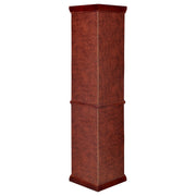 If you fancy special collectibles or unique knickknacks, where can you show them all off? This corner curio cabinet is a fantastic place, for starters. It is crafted to fit perfectly into the corner of your living room or den for prominence. Features five glass shelves plus a bottom one for plenty of display areas. Beautifully finished in medium brown that matches almost any decor. Key Features: • Transitional corner curio cabinet finished in warm medium brown • Designed to fit snugly in corners for space-saving display versatility • Four clear tempered glass side doors allow easy access from multiple angles • Includes four adjustable tempered glass shelves and a fixed bottom shelf • Mirrored back panels enhance display visibility and reflect light • Crafted from rubberwood, engineered wood, glass, and basswood veneer