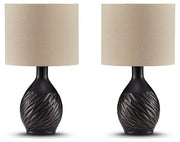 Exuding a relaxed vibe, this ceramic table lamp set is a bright idea. The textured bases and distressed matte black glaze add character and casual elegance to your home. Whether you're working or unwinding, this set's tranquil lighting will create the perfect atmosphere.