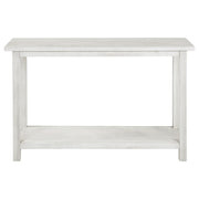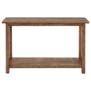 Crafted to complement both entryways and living rooms, this console table showcases a rustic aesthetic and versatile appeal. Fashioned from pine wood and reinforced with engineered wood, its open lower shelf provides ample space for baskets or decorative accents. The slim profile allows easy placement behind a sofa or along a hallway, making it a stylish choice for farmhouse or casual interiors. Enhance your space while keeping essentials close at hand. Key Features: • Introduce rustic charm with this streamlined console table in any setting • Distressed brown finish creates a warm, casually elegant focal point • Rectangular top suits narrow spaces like hallways or under windows • Lower shelf offers extra room for baskets, décor, or daily essentials • Crafted from pine wood and engineered wood for long-term durability • Works beautifully as a sofa table behind seating for a cohesive overall style