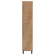 Enhance your entryway with this stylish shoe cabinet, pairing natural oak hues with modern, functional details. Crafted from engineered wood and laminate veneer, it features double doors framed by airy metal cane-style panels. Inside, an off-centered division and multiple adjustable shelves accommodate various shoe sizes, ensuring a personalized storage solution. Sturdy black metal legs anchor the piece, delivering a contemporary look that effortlessly streamlines your footwear collection. Key Features: • A chic shoe cabinet dressed in a natural oak finish • Airy metal cane-style door panels for ventilation and visual interest • Off-centered interior division and adjustable shelves for flexible storage • Engineered wood and laminate veneer construction ensures lasting quality • Supported by sturdy black metal legs for modern appeal • Perfect for organizing footwear in entryways, hallways, or closets