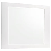 Sleek and contemporary, this four-piece bedroom set exudes modern glamour. Its white, polyurethane coating is pleasingly polished to a gorgeous, glossy finish. The mirror and case pieces are simple and straight. The sturdy bed frame boasts a boldly curved shape. Gleaming, chrome hardware completes its design with even more brilliant shine. Key Features: • Stellar contemporary design shows off clean lines and a cool, airy design aesthetic • Designer white polyurethane finish polished to a superior high-gloss effect • Bed features plank headboard and low profile footboard • Polished chrome metal bar pull handles add minimalist appeal • Spacious storage drawers with felt-lining in top drawers • Metal extension glides create stability and smooth operation
