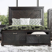 This bedroom set uses V-patterned wood panels to create an elegant display of color and texture.The result is an almost iridescent shine that can give this set a two-toned appearance. A tall headboard design allows for more wood to show off its luscious quality and holds a hidden internal USB charger. The footboard drawers and matching case good faces have the same V-pattern but use a flat strip along with vibrant nickel hardware to separate individual drawers. Simple block feet hold up this sophisticated collection filled with rich wooden hues.