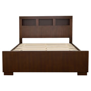 The Jessica wood bedroom set blends smart storage and sophisticated design for a refined modern retreat. Featuring a platform bed with a built-in bookcase headboard and integrated LED lighting, it offers both form and function. Each coordinating case piece is crafted from rubberwood, engineered wood, and ash veneer, complemented by silver-tone hardware for a contemporary touch. The rich cappuccino finish adds warmth, while English dovetail drawers with felt-lined tops provide practical, lasting elegance._x005F_x000D_ Key Features: • Queen bedroom set with LED-lit bookcase headboard and platform base • Includes matching dresser, mirror, and nightstand with bar hardware • Crafted from rubberwood, engineered wood, and ash veneer • Rich cappuccino finish warms up a contemporary bedroom • Felt-lined top drawers protect jewelry and delicate items • English dovetail drawer construction with smooth metal glides
