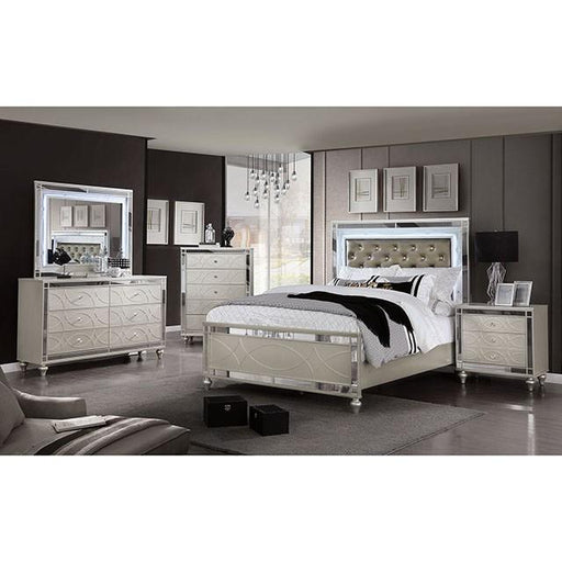 Salamanca Silver Night Stand, 28"W X 17"D X 28"H, 68.3lbs. Out with the old and in with the new, this champagne finished set is unlike any other! W...