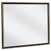 Geometric features from this California king four-piece bedroom set transform a modern setting. Warm and full of depth, the high headboard features upholstery and a smoked peppercorn finish. Complete with ample storage, this set has a nine-drawer dresser and two-dresser nightstand and included shelf. Welcome structure from the silhouette and personality from the retro inspired details. Dress up the dresser with the clean and elongated mirror.