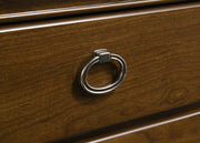 This four-drawer chest brings refined storage to traditional bedrooms with clean molding, antique nickel hardware, and a rich cherry finish. Felt-lined top drawers offer delicate protection, while cedar-lined bottom drawers help resist moisture and odor to preserve garments. With smooth gliding drawers and a stately silhouette, this chest delivers both classic appeal and long-lasting utility. Key Features: • Four-drawer chest with crown molding and stately silhouette for bedroom storage • Brown cherry finish pairs with antique nickel ring pulls for elegant contrast • Top drawer is felt-lined with tinted interior and English dovetail joinery • Cedar-lined bottom drawers protect clothing by repelling odor and moisture • Drawers glide on 45mm metal runners for smooth and reliable functionality • Constructed from solid rubberwood, engineered wood, cherry veneer, and plywood