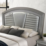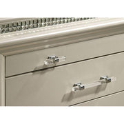 MADDIE Cal.King Bed, 94 7/8"L X 86 5/8"W X 70"H, 330lbs. Create a room made for a princess with this bedroom set from the Maddie Collection. The curved headboard is padded and upholstered in a horizontally-tufted leatherette, emphasizing the pearl white finish. The dresser and chest feature acrylic legs, crystal accents, and a beveled mirror with a LED light creating a glamorous aesthetic. Give into your glitzy side with this opulent set.