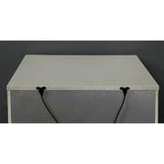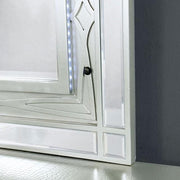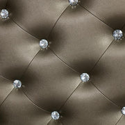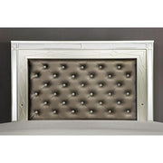 MANAR Cal.King Bed, 90 1/4"L X 79"W X 62 1/4"H, 198lbs. The glamor is in the details of this bedroom set from the Manar Collection. The headboard is upholstered in a faux leatherette, button-tufted with crystal-acrylic buttons, and embedded with a LED light, creating a sparkling aesthetic. The matching pieces feature a decorative, circular pattern, only adding to opulence of the design. Your bedroom will be a place to pamper yourself with this set.