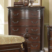 Embolden your room with traditional designs and modern details that define this chest. Lightened wood accents detail the chest, creating soft contrast against the finish. Crafted with sculpted legs, this bedroom set truly sets itself apart with lavish designs.