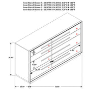 Create an interesting visual in a modern bedroom with the geometric features from this eastern king four-piece bedroom set. The high upholstered headboard adds depth and warmth with a smoked peppercorn finish. Versatile in style, this set is complete with a nine-drawer dresser and two-dresser nightstand and included shelf. Bring structure and personality to a room with the retro inspired details. Clean and elongated, the mirror looks great above the tall dresser.