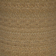 Wrapped in handwoven seagrass, this round accent table adds organic warmth to any living room. A clear tempered glass top offers a smooth, functional surface while revealing the textured beauty beneath. Its cylindrical form is supported by a durable plywood frame and finished in a light natural tone. This occasional table blends rustic charm with modern simplicity, making it ideal as a side table, end table, or compact cocktail table.