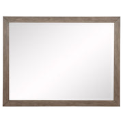 Take your bedroom decor to the next level with this five-piece modern bedroom set with built-in LED lighting in both the headboard and the nightstand. Its soft barley brown finish highlights wood grain details, bringing down to earth character to a refined bedroom setting. The bed adds four storage drawers and a padded, upholstered panel in the headboard, perfect for lounging and ambiance. The nightstand is an eye-catching bedside addition, offering storage in one drawer, and open shelf, and ambient illumination that sets the tone. The chest and dresser deliver ample drawer storage for clothing and accessories, and a framed mirror on the dresser completes the look.