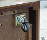 Elevate your entertainment experience with this coffee table with stools. A functional companion for your seating area, it’s defined by a richly versatile finish. Instantly upgrade game days and movie nights—the four stools wheel out easily with casters, tucking away neatly under the table when you’re done. And with storage under the top of each stool, you can keep essentials on hand and out of sight.