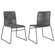 Lend a space a little texture with this contemporary rope woven chair. Designed with a sleek metal frame, a homopolymer rope weaves its way around the backrest and seat, offering a comfortable place to rest. The metal frame is made with a powder coated finish, offering extra durability and resistance. With a slim seat and angled legs, these chairs can be stowed away and stacked in a close until guests arrive. Or, better yet, place them front and center at a minimal, modern dining table or home office setup. Key Features: • These rope-woven chairs are all the rage. They come fully set up and stackable for saving space and are easy to transport • Chairs are made of metal with a powder coated finish and 100% polypropylene homopolymer rope woven by hand • Rope is extremely strong and durable. Chairs have passed 300 lbs static sitting test • Hand weaving is a labor intensive process, but the result is impressive • Chairs are recommended for indoor use only