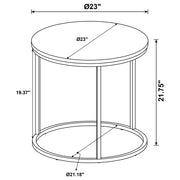 This sleek end table combines minimalist design with modern materials to create a striking accent piece. Featuring a round faux marble tabletop in grey, the piece is complemented by a sturdy gunmetal metal base. Its compact size makes it perfect for smaller spaces, while its refined design adds a touch of sophistication. Ideal for placement beside an armchair or sofa, this end table is a versatile choice for contemporary living rooms or bedrooms. Key Features: • Round end table with a minimalist design to fit modern living spaces • Faux marble tabletop in grey for a sleek, easy-to-clean surface • Gunmetal metal frame provides durability and a contemporary aesthetic • Perfectly sized for small spaces, ideal for a vase or small decorative item • Versatile design complements sofas, armchairs, or bedside setups • Light and airy appearance enhances the modern style of your room