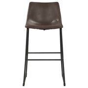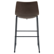 This cozy, casual stool will have you dining in style. With a supportive back and foot pedestal, it offers a comfortable place to enjoy a meal or a cocktail. Its seat is upholstered in beautiful, two-tone brown leatherette. Its base is constructed from high-quality metal in a striking black finish. With a sleek silhouette and a classic design, this stool looks fabulous in any dining area. Key Features: • Enhance your pub seating with these armless bar stools in a captivating two-tone brown and black combination, adding an industrial touch to your space • Elevate your dining style with these casual stools featuring a supportive back and foot pedestal, offering comfortable seating for meals and cocktails • The seat's beautiful brown leatherette upholstery adds a touch of sophistication, enhancing the stool's aesthetic appeal • Built with high-quality metal in a sleek black finish, the stool's base not only provides stability but also contributes to its eye-catching design • With a sleek silhouette and classic design, these stools effortlessly enhance the ambiance of any dining area, combining functionality with a touch of fabulousness