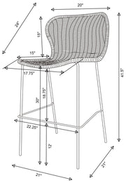 Designed with a mid-century-inspired aesthetic, this contemporary stool offers a charming brown faux rattan seat, nestled in place by an open, airy frame. The seat offers a subtle contoured shape that cradles the torso and offers a comfortable place of rest. Supporting the seat are slender tubular legs in a sandy black finish, pushing the dark tones and hues to create a dramatic, moody feel. Natural elements collide to offer a boho-inspired touch to bars, breakfast nooks and more. Pull this stool up to an elevated dining space for a casual seating arrangement. Key Features: • Contemporary stool with mid-century-inspired aesthetic featuring brown faux rattan seat and open, airy frame • Sandy black finish tubular legs supporting the seat for a dramatic, moody feel • Natural elements create a boho-inspired touch perfect for bars, breakfast nooks and more • Subtle contoured shape of seat cradles the torso for a comfortable place of rest • Pull up to an elevated dining space for a casual seating arrangement
