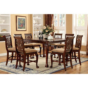 PETERSBURG II Cherry Counter Ht. Table, 54"(36" + 1 X 18"Leaf)L X 54"W X 36"H, 118.8lbs. This bold traditional style table is ideal to fit any grand dining space within the home. This piece is available in dual sizes, has claw feet fine points, and spacious seating space perfect to accommodate any dining function. Features: Traditional Style Counter Height Chairs Padded Fabric Chair Cushions Curved Claw Feet Solid Wood, Wood Veneer, Others Cherry Finish