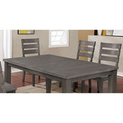 This transitional set is the versatile dining collection you have been looking for. The neutral gray finishes allow you the freedom pair this table with everything from earthy tones to bold colors. The plank-style table top features natural wood patterns for a rustic touch. The ladder-back chairs feature padded and upholstered seats, ensuring inviting comfort for you and your guests.