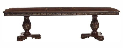Catalonia Collection by Homelegance Platinum Gold finish Made of Cherry veneer and wood Separate extension leaf Table extends by pulling both ends...