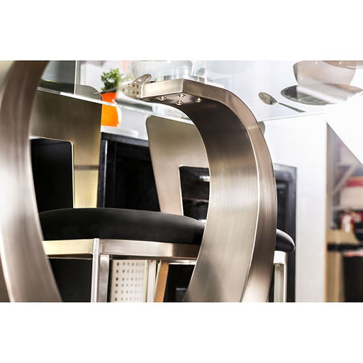 Place this flowing set in any modern setting. The swirling metal base durably supports the wide, round glass top while highlighting the beautiful s...