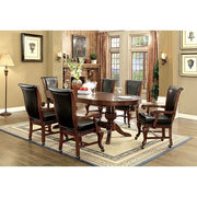 Make sure everyone's all in for game night with the help of this casino-worthy table! The stakes have never been higher to impress, but this piece offers the right amount of style with its sleek faux leather edge and ornate pedestal legs. Pull up a chair and take a seat around this spacious table that will inspire all of the big spenders to play a hand.