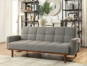 Futons don't always look like futons. This stylish piece has all the angular charm of a mid-century modern sofa with the functions of a relaxing futon. The straight lines of the tufted back and track arms make the angled legs stand out for that classic design aesthetic. Small pouches in the arm rest ensure you have a safe place for the remote between sleeping and sitting periods. This lovely little piece can be the perfect addition to a lounge space or bedroom, without sacrificing any sense of style.