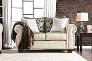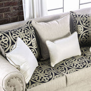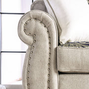 A glamorous yet understated design, this sofa collection begins with two neutral color options to ensure a structure that fits any living space. Warm chenille fabric wraps tightly around the solid wood frame and masks the gel memory foam within each cushion. Rolled arms are further accentuated by the nailhead trim, drawing attention from the patterned loose back pillows and elegant tapering feet.