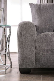 Wrapped in neutral fabric, this love seat recedes into the background to give room for your personality to shine. With a bold stature and low profile, this piece serves as the perfect canvas, allowing you to accessorize freely around its plain, solid color. Meanwhile, the soft chenille, rounded armrests, and loose back pillows work together to offer softness and great comfort.