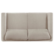 Rooted in clean architectural lines, this upholstered sofa set blends modern structure with plush comfort. Each piece is framed in engineered wood with a warm coffee finish and features recessed panel arms that lend sculptural definition. Upholstered in soft taupe polyester, the seat and back cushions are fully reversible, offering extended usability and lasting support. Designed to bring balanced form and function to contemporary living spaces. Key Features: • Sofa set features clean lines and recessed panel arms for a structured, modern silhouette • Framed in engineered wood with a rich coffee finish for warm contrast and durability • Taupe polyester upholstery offers a soft texture with easy-care functionality • Reversible seat and back cushions provide flexibility and long-term comfort • Low-profile design balances tailored form with a relaxed, welcoming feel • Coordinates seamlessly for a cohesive and versatile living room arrangement
