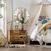 BLANCHEFLEUR Chest, 31 1/2"L X 13 3/4"W X 25 1/2"H, 66.5lbs. Striking spalted wood grain and roughly sawn finish make this chest pop naturally. The sheer amount of drawers makes it possible to store a ton of your personal items, while the angled legs give it a more modern foundation. The front panel of each drawer has a different texture--hand carved patterns displaying tribal designs.