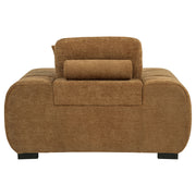 Transform your reading nook or living area into a haven of comfort with this mid-century inspired chair. Its wide, rounded arms and plush, tufted waterfall seat invite you to relax, while soft, neutral upholstery enhances its cozy appeal. A durable frame ensures long-lasting support, and reversible back cushion offer adjustable comfort. This versatile chair captures a refined yet inviting look, seamlessly blending style with everyday usability. Key Features: • Accent chair in camel fabric features sculptural curves and deep vertical channel tufting • Wide seat with plush waterfall cushioning offers bold form and full-body comfort • Reversible back cushion and accent pillow provide flexibility and cozy support • Fully upholstered from base to back for a soft, cohesive visual appearance • Padded with layered foam over a durable wood frame for lasting everyday use • Perfect as a statement seat in living rooms, bedrooms, or modern lounge spaces