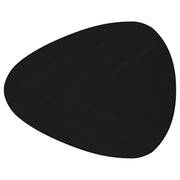 Center your living room seating around the sleek, contemporary design of this triangular coffee table. Handcrafted from solid mango wood, its black finish highlights the smooth texture of the top while enhancing its modern appeal. The triangular shape with softly rounded corners lends a light and airy feel, complemented by tapering splayed iron legs with a black powder-coated finish. Durable and stylish, this handmade cocktail table brings a sense of balance and sophistication to any seating arrangement.