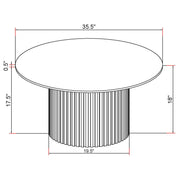 This round coffee table showcases a luxurious sintered stone top with elegant veining, offering durability and style for modern living spaces. The sturdy metal base features a fluted design and a sleek white powder-coated finish, providing a clean and contemporary look. Its robust materials ensure stability while creating a statement piece that pairs functionality with artistic flair. Ideal for living rooms, this table blends timeless aesthetics with everyday usability.