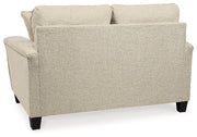 If you’re looking to lighten the mood, you’re sure to find this space-conscious, budget-conscious loveseat a breath of fresh air. Covered in a cream-tone chenille upholstery loaded with plush texture, this less-is-more contemporary loveseat is dressed to impress with angled side profiling and track armrests wrapped with a layer of pillowy softness for that little something extra. Crisp and clean, the 2-over-2 cushion styling adds up to one sensational look.