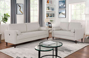 This leatherette loveseat will bring you back to the long gone era of cigars and wine. Here we find elements such as loose pillow backs, a pair of bolter pillows, and a tufted one-piece seat cushion. The arms are trimmed with welt that innocuously matches the color of the body. The simple, wooden legs are tapered and finished in warm walnut. Exuding an unmistakable mid-century modern vibe, this retro-modern piece reminds us of a few decades back, with colors that explicitly evoke the turn of the late 60s.