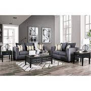 Inkom Slate Love Seat, 69"L X 38"W X 40"H, 125lbs. A modern color combination is gray and yellow and this modern sofa collection is a beautiful example of its use. Track arms make for a sleek silhouette. The lines of the set are amplified by the stripes of the throw pillows. The yellow is a perfect p op of color against the cool gray, it adds brightness and character without becoming overwhelming. It's modern, it's chic. Features: Medium Density Foam Track Arms Box Cushions Seating Loose Back Pillows Nailhead Trim Pillows Included