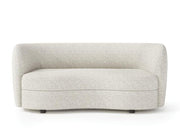 Compact fitted kidney-shaped single cushion, curved arms and backrest, and barely-there wooden legs contribute to this piece's tight fit and ultra comfort. Besides the intriguing shape, the other draw here is the visual impact it brings to any modern space. The boucle fabric features metallic undertones which when paired with a neutral color palette under certain lighting conditions, allow the texture to glitter and shine in the most undeniably chic way.