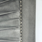 Every bedroom should have a statement piece and this contemporary, platform bed is just that! The entirety of this bed is encased in soft gray flannelette to make for a truly cozy looking bed. The central button tuft creates a beautiful ruffled pillow lined by a fun nailhead trim. Take this bed home and bask in comfort.