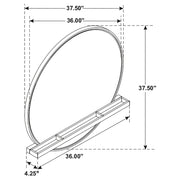 Complete your bedroom or dressing area with a modern round wall mirror. Great over your dresser or alone, the mirror features a crisp black frame finish. Its round profile includes flat glass, with a jewelry tray built in. The tray crosses horizontally low on the mirror and includes three recessed trays perfect for holding jewelry pieces, fragrance bottles and even prestige cosmetics or decor. Its black finish is neutral and versatile, adding cohesion to the matching bedroom pieces or standing alone beautifully.