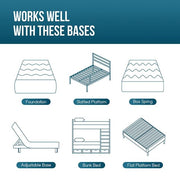 Made of ventilated gel-infused memory foam and supportive high density base foam, our 6-inch mattresses deliver optimal comfort to maintain proper sleep posture while offering targeted support to keep the spine in its natural position. Works well with different types of bed bases, including adjustable bases and box springs.