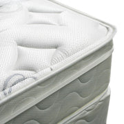 JALEN White 9" Euro Top Mattress, E.King, 80"L X 76"W X 9"H, 70lbs. 9"" Euro top mattress,White Fabric With Grey Flowers. Multi Needle 5 Layer Quilting 0.5 oz. Fire Guard Barrier.Available in Twin,Full, Queen, Cal.King, and E.King sizes. Features: Quilting: White Fabric With Grey Flowers. Multi Needle 5 Layer Quilting 0.5 oz. Fire Guard Barrier Safety: Hanes Stratus FR Cover Innerspring: High profile classic 5 turn 312 coil 13.5 gauge unit Foam: 1/2 Padding: Multiple heavy duty insulator pad Stitching: 1 1/4 Coil Counts: Twin: 216 Full: 312 Queen: 390 Cal King: 459 Eastern King: 468 Comfort: Medium Plush Warranty: 5 Year Non-Prorated Foundation: DM315-F