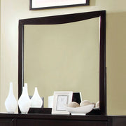 Gorgeous lines and sleek bases give this bedroom furniture a distinctive contemporary edge. With a dark espresso finish, this transitional style mirror adds modern structure to any bedroom settings.