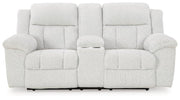 With its large-scale design, this extra-spacious reclining loveseat with console is a masterclass in accessible style. Plush, ultra-soft upholstery keeps everyone cozy as you lounge with family or guests. In a neutral hue, it seamlessly suits different aesthetics as your taste changes. Time to relax? The loveseat's pull tab reclining allows you to mellow out with ease.