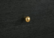 Put finishing touches on a sophisticated bedroom ensemble with this modern two-drawer nightstand. Offering roomy storage for overnight essentials, it features a rich black finish over melamine surfaces that are designed for longevity. The nightstand features a rounded corner case, creating a softened effect in a luxurious space. Drawer fronts are complemented with brass-finished ball knobs, adding the perfect hint of warmth and sophistication. A recessed base completes the look, while metal drawer glides provide for smooth, seamless operation.