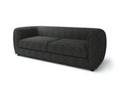 This compact living room ensemble is full of welcomed surprises. The tall arms and low back is an obvious homage to the tuxedo style, but the bulbous shape and smoother lines is a unique twist taking inspiration from the modern era. Underneath the seat cushions are high density foam, making firmer seats than one would expect for the shape that it is in. Finally, soft boucle fabric wraps around the whole piece highlighting a certain air of elegance and quiet class.