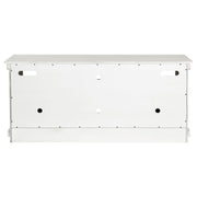 Complete a media center in your inviting home with a modern farmhouse TV stand. It's an approachable design with roughhewn wood details that create texture and dimensionality in your living space. Two shelves and six compartments create ample storage, perfect for everything from peripherals and accessories to personal decor. The media console features a clean-lined silhouette with a slim profile, perfect for a flat panel or wall-mounted television. This TV stand accommodates televisions up to 65 inches. Key Features: • Roughhewn wood markings add artisan character to a modern farmhouse TV stand • A distressed finish lends casual farmhouse character in your den or living room • Two open shelves provide space for media and gaming peripherals and decor • Six compartments storage that's perfect for accessories and media like games and controllers • A slim, straight-lined silhouette supports a flat panel television up to 65 inches