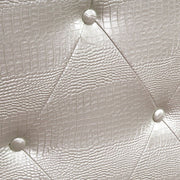 Unpretentious, unassuming, but clearly elegant, this headboard features exotic croc skin fabric texture defined by supple leatherette fabric to add quiet sophistication as it grounds your bed. The master bedroom just got an upgrade in luxury with this bed.